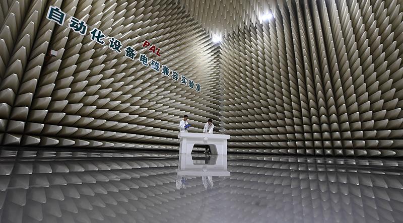 在南瑞集團(tuán)有限公司自動化設(shè)備電磁兼容實驗室,科研人員在進(jìn)行輻射發(fā)射實驗準(zhǔn)備工作(2023年7月7日攝)。新華社記者 季春鵬 攝