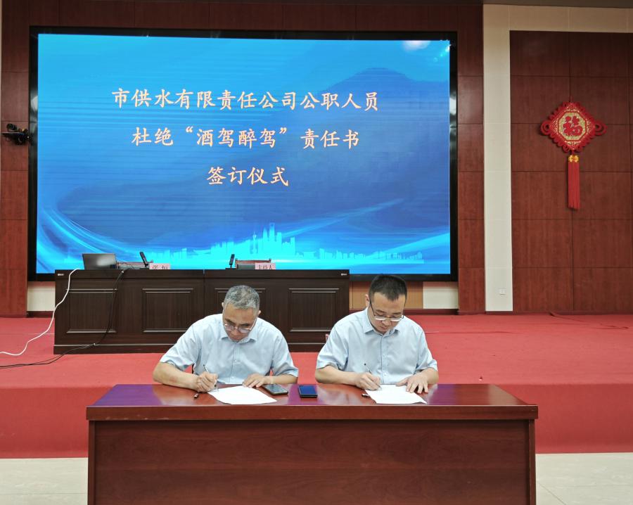 講座結(jié)束后,公司領(lǐng)導(dǎo)班子成員帶頭簽訂《市供水有限責(zé)任公司公職人員杜絕“酒駕醉駕”責(zé)任書》,200多名職工緊隨其后,以實(shí)際行動(dòng)落實(shí)省委,市委深化“一改兩為”全面提升工作效能大會(huì)精神。